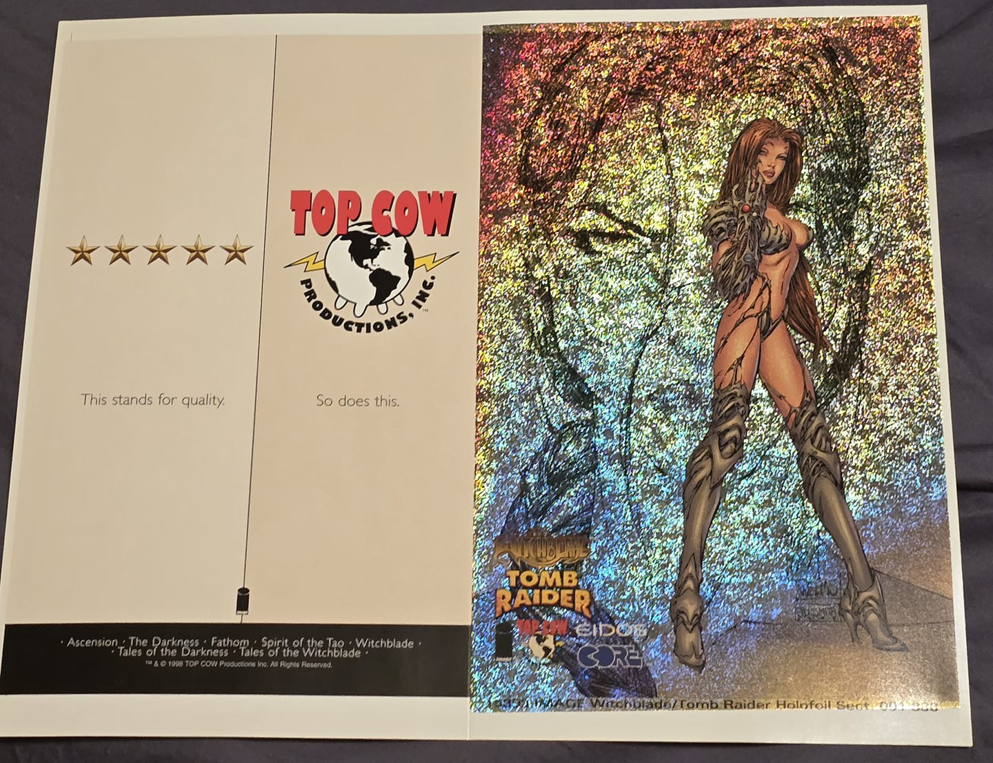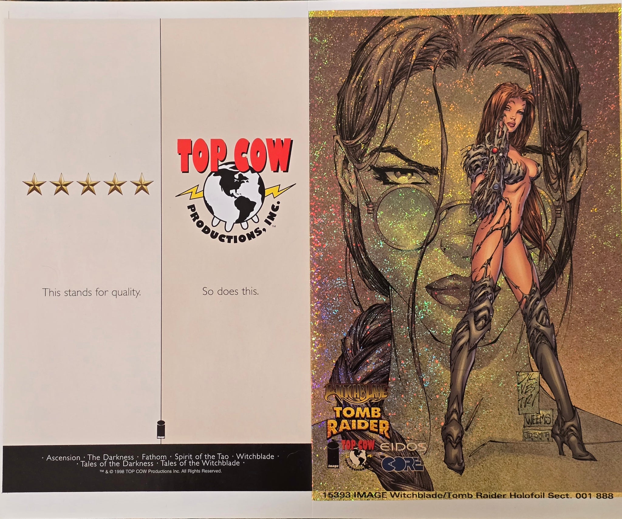 WITCHBLADE/TOMB RAIDER GOLD SPECKLE HOLOFOIL UNCUT COVER SHEET MARK SILVESTRI