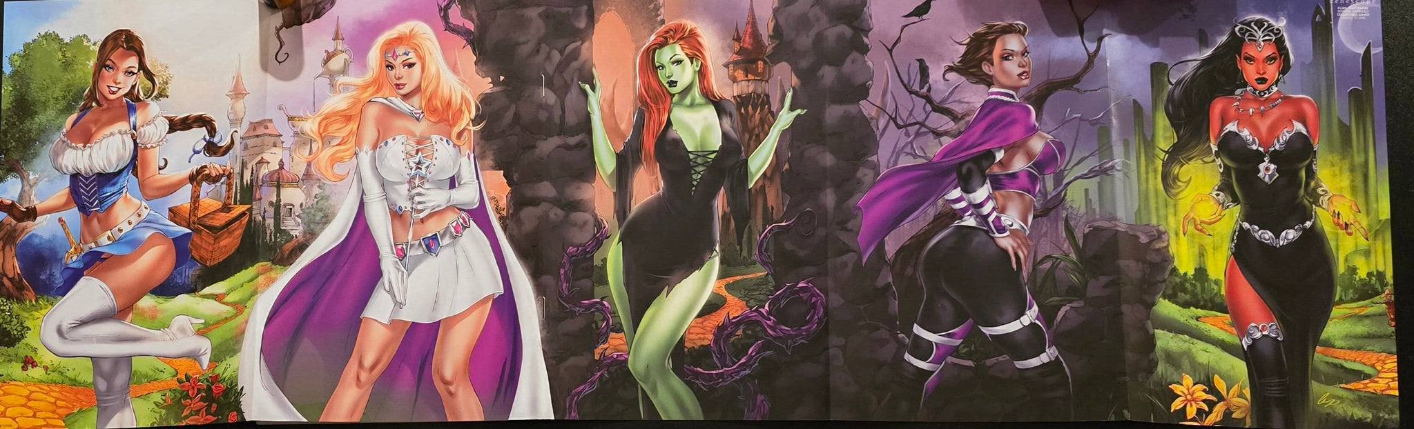 BOOK COVER FOLDS OUT TO SHOW ALL OF THE FAIRY TALE CONNECTING COVERS